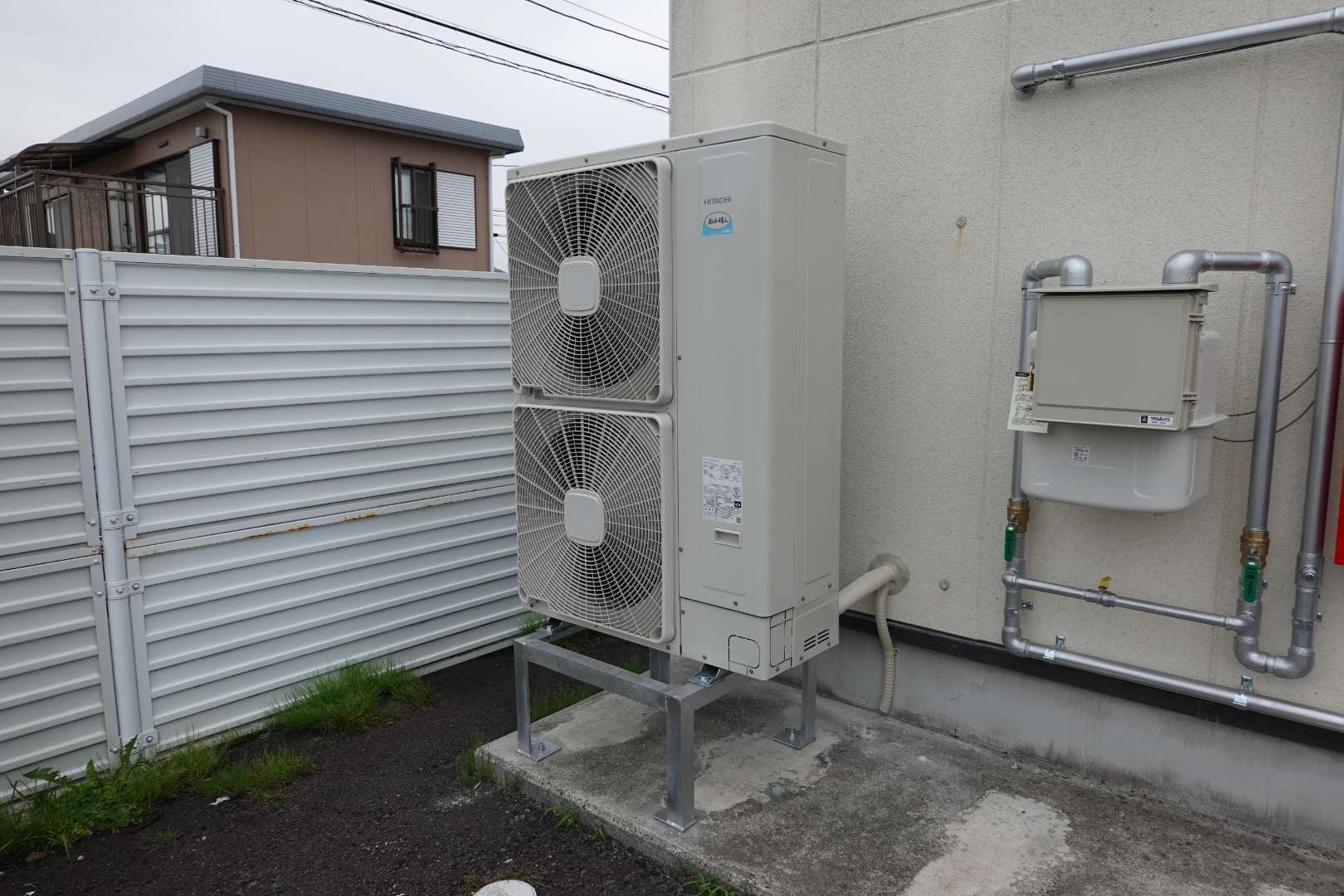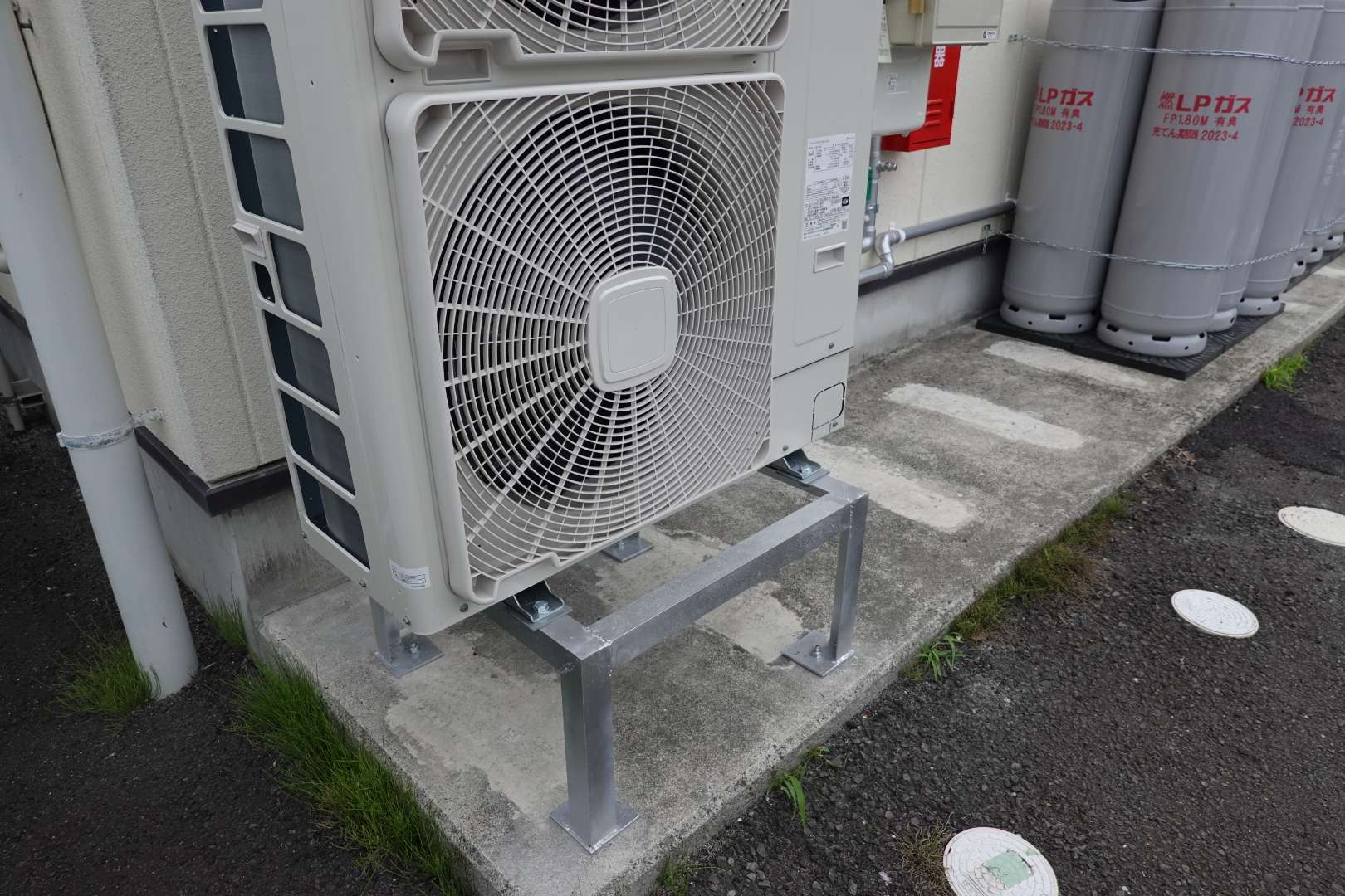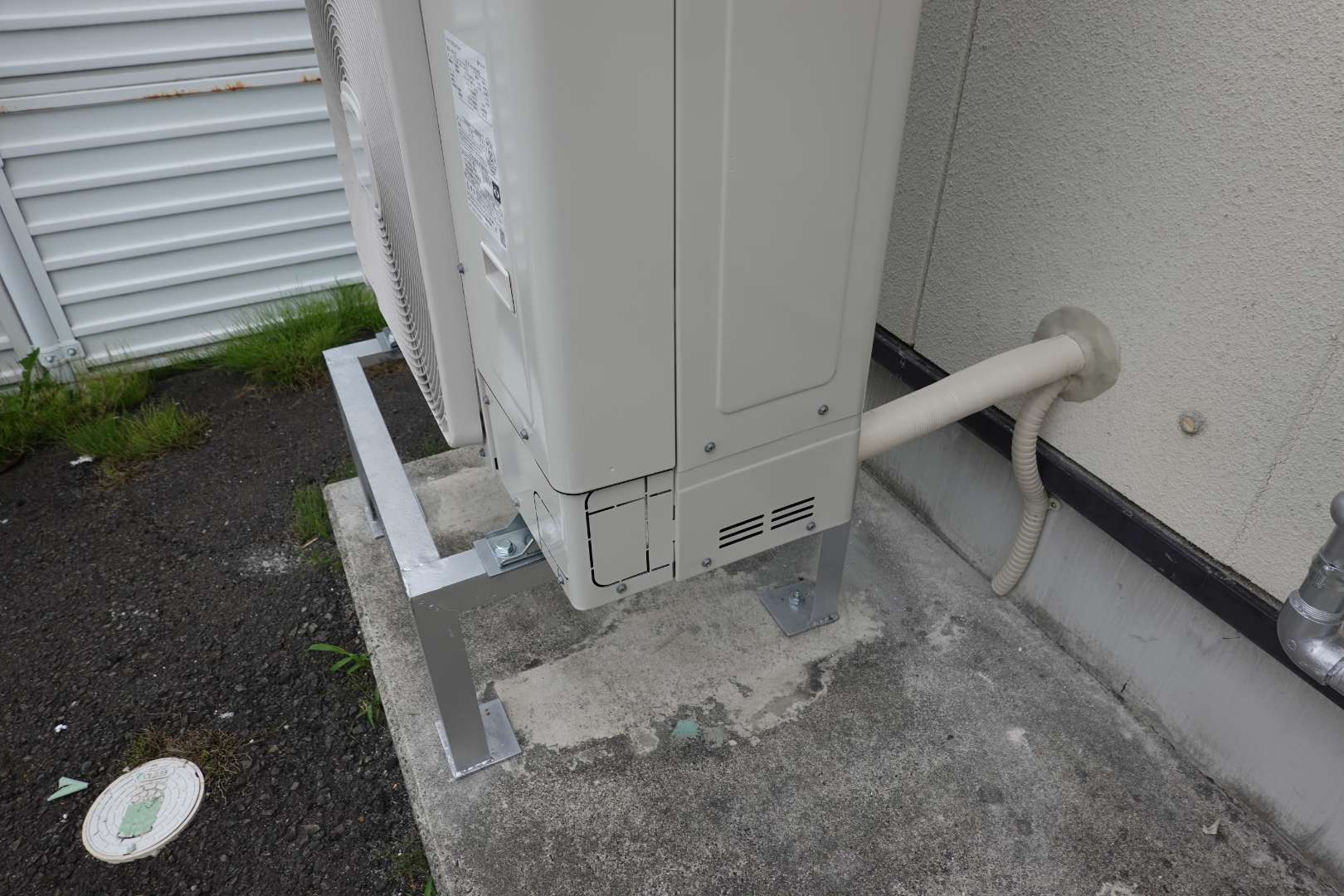 4.新規平地高置き架台取付・室外機搬入据付工事。