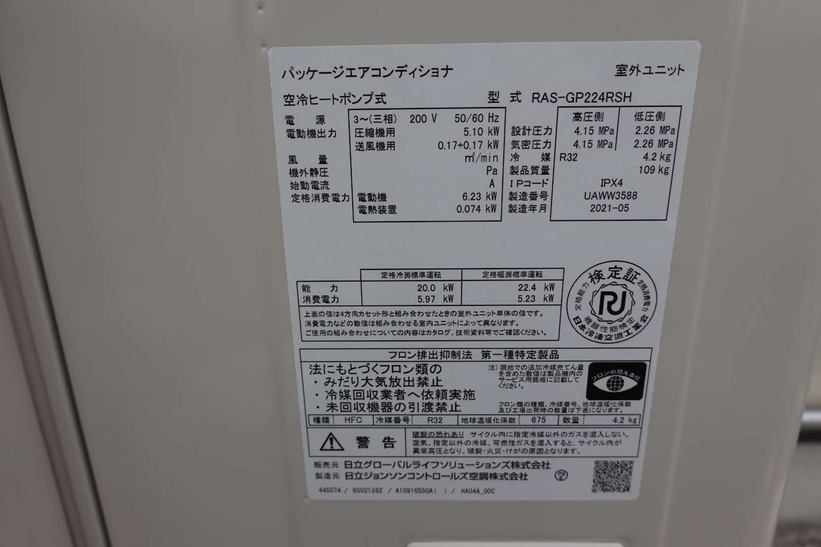 8.新規機器情報 日立 型式 RPK-GP224RSHP 。