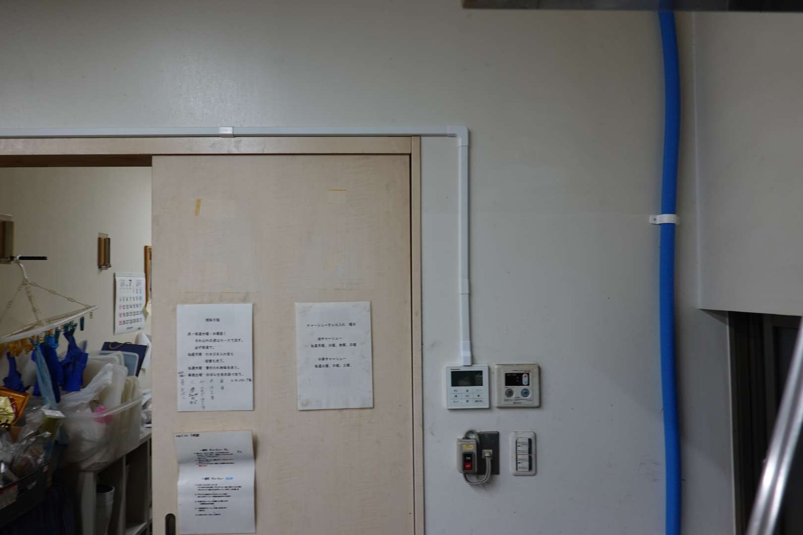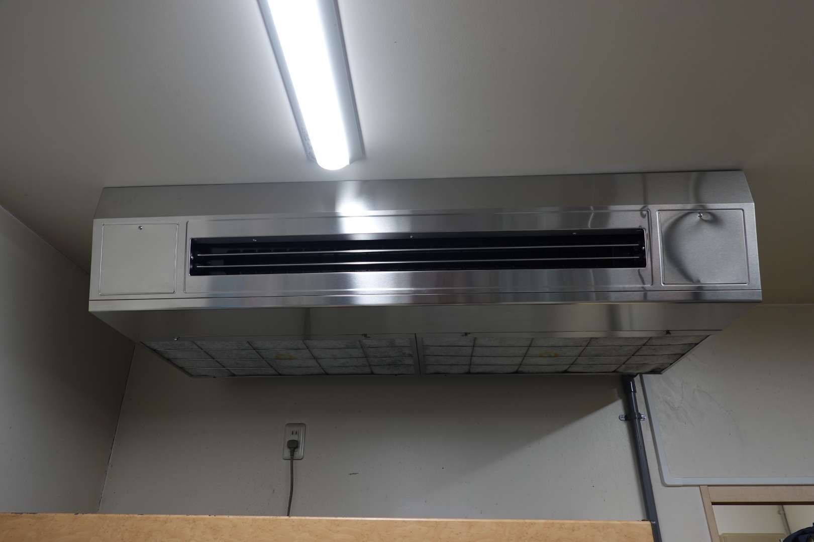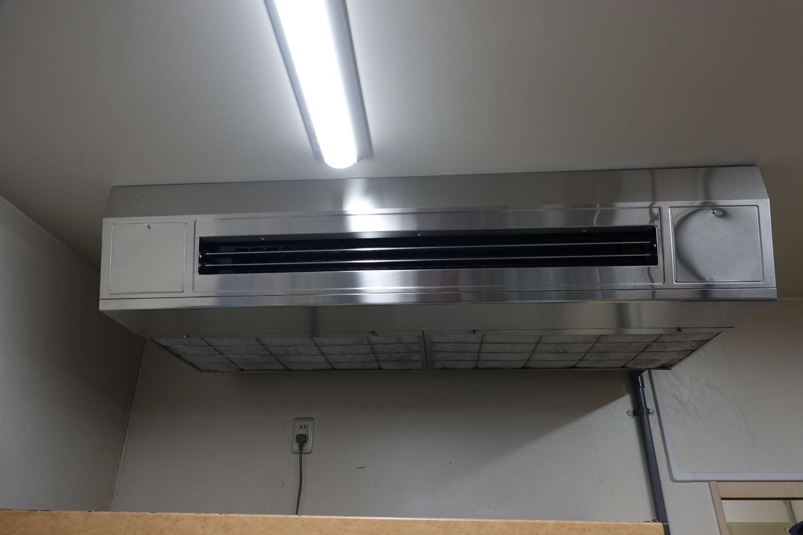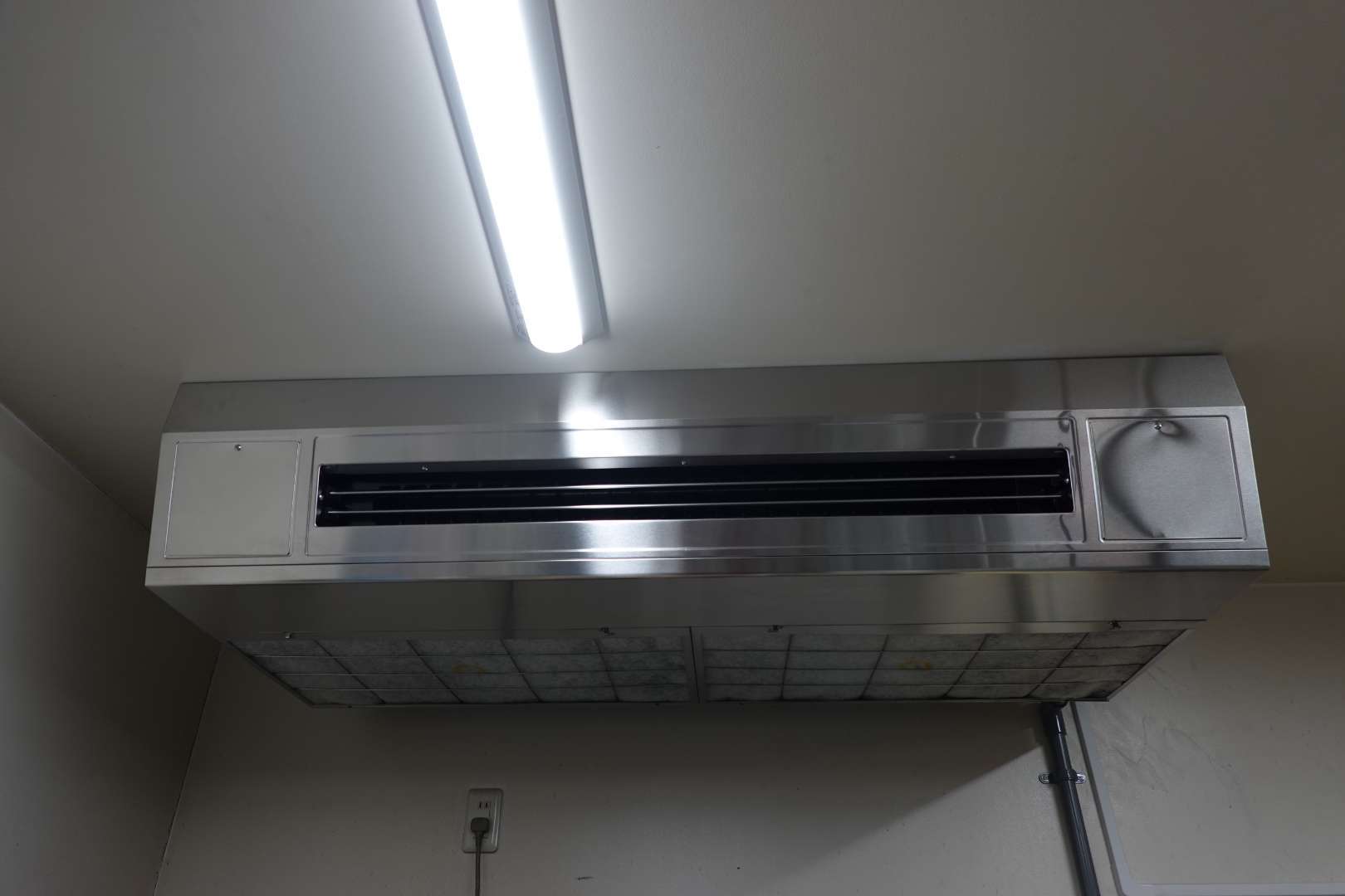 宮城県仙台市若林区 飲食店店舗様厨房内 パナソニック 厨房用天吊型業務用エアコン新規取付・新規動力電源配線工事