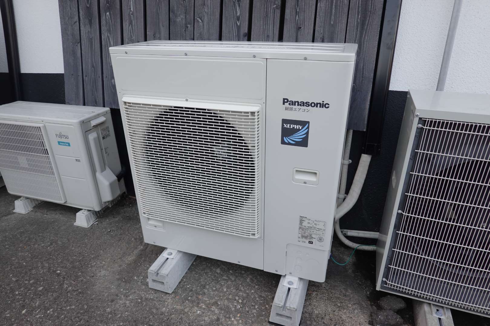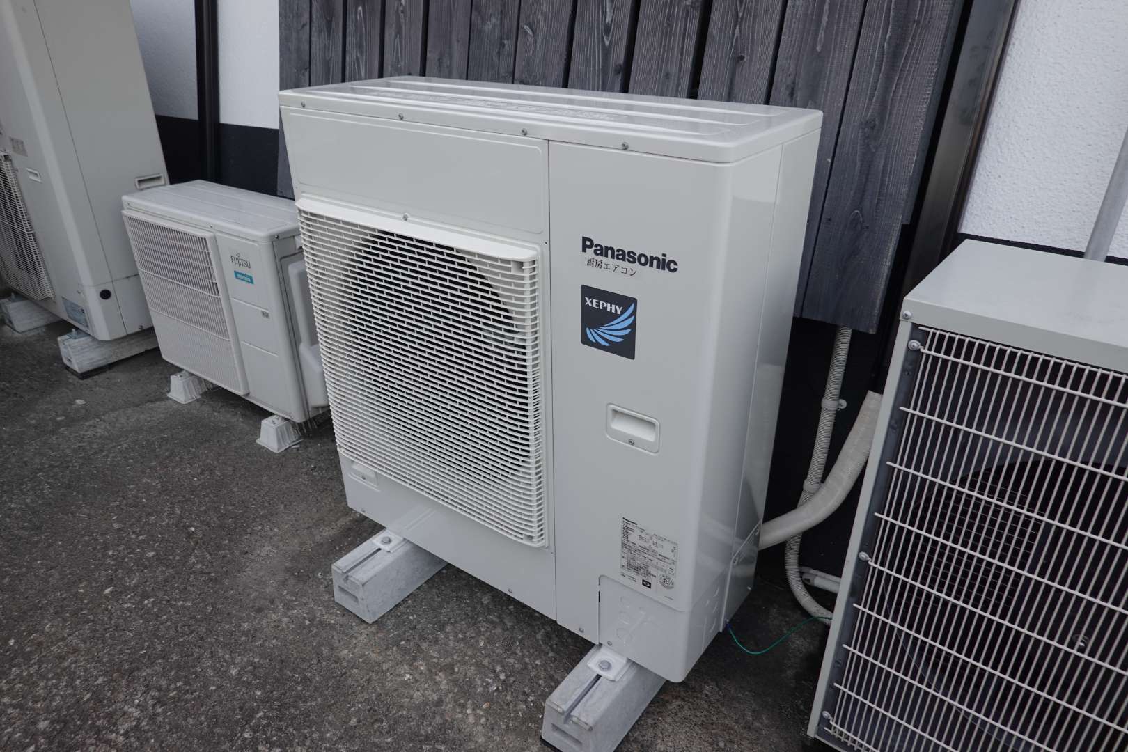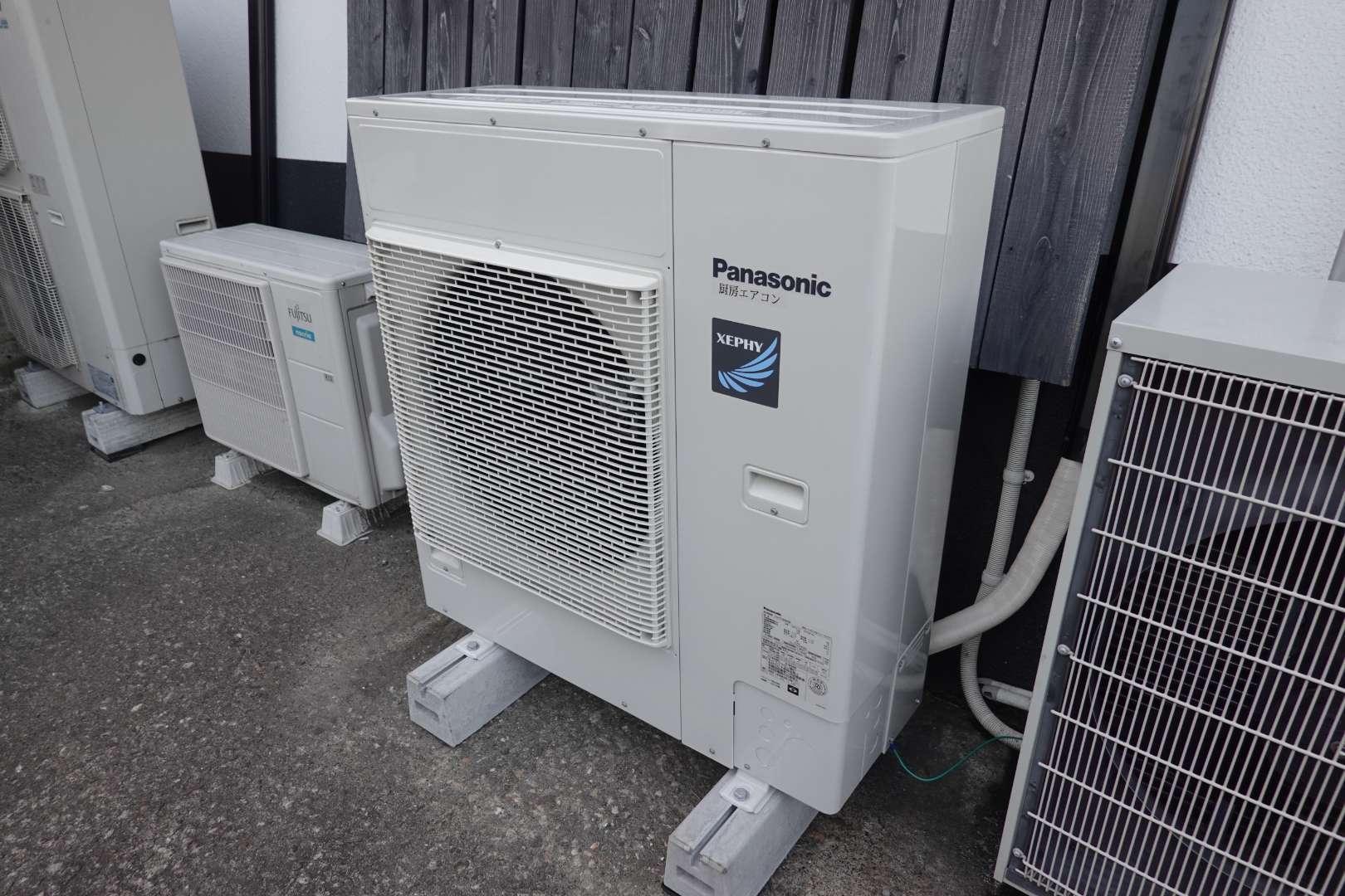 宮城県仙台市若林区 飲食店店舗様厨房内 パナソニック 厨房用天吊型業務用エアコン新規取付・新規動力電源配線工事