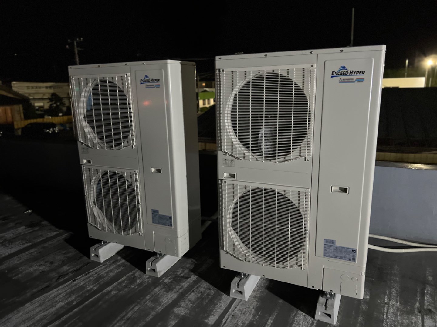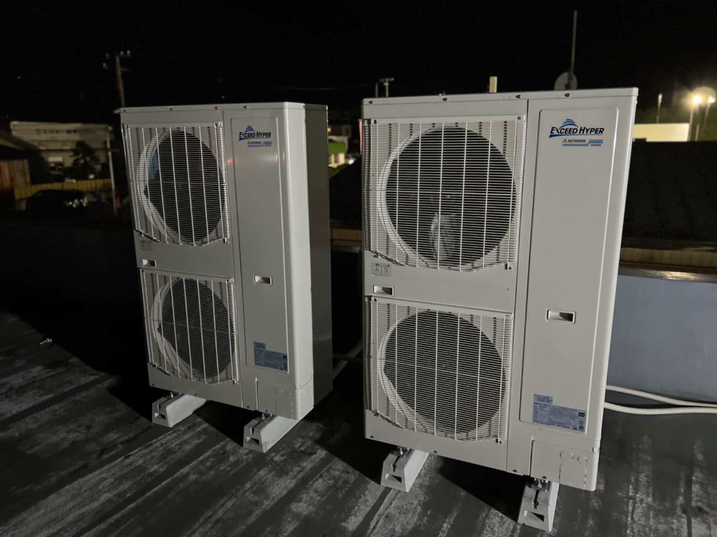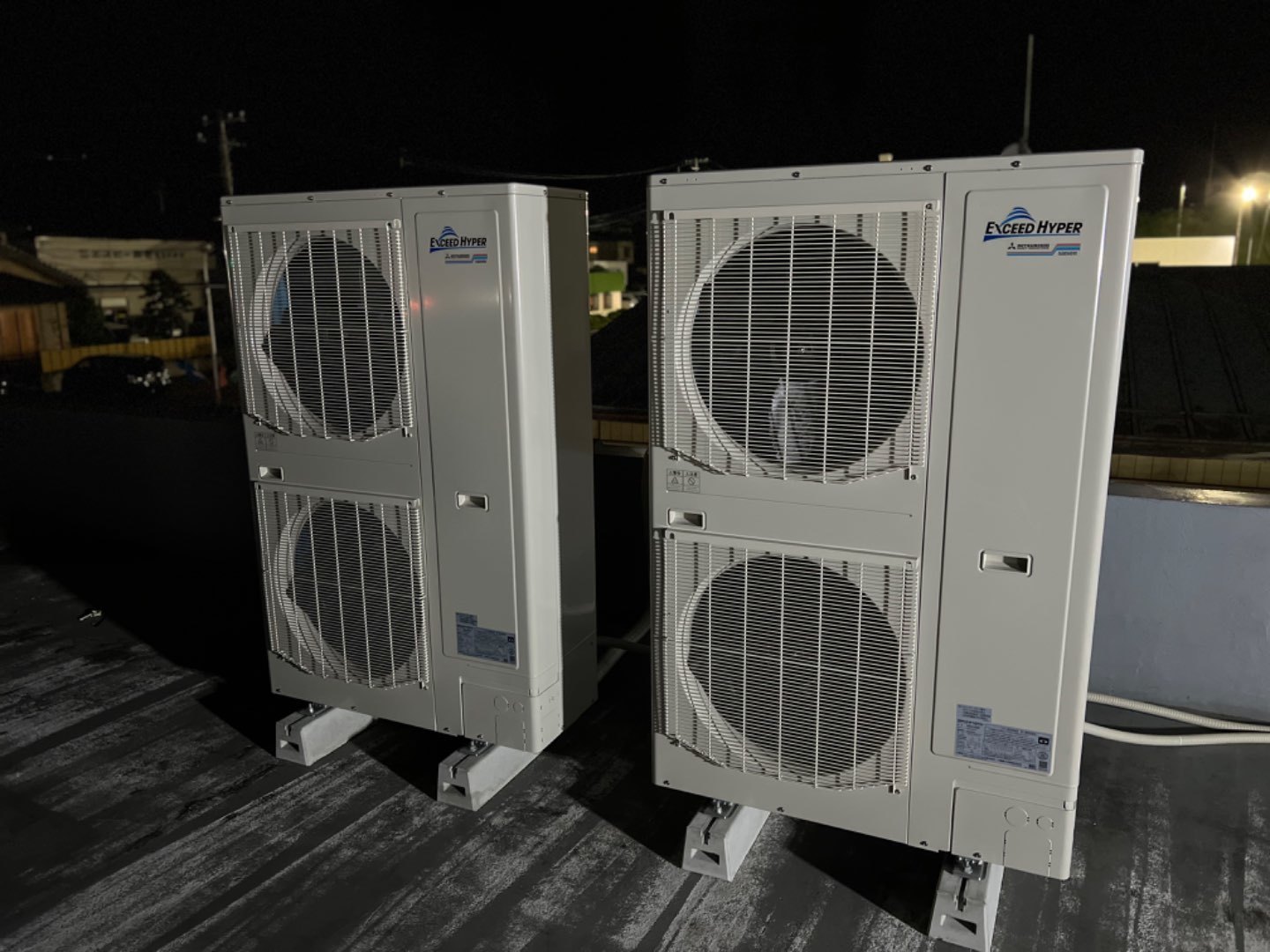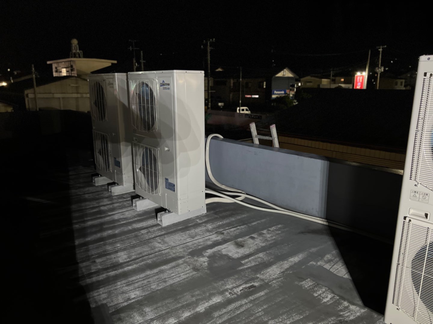 福島県田村市船引 自動車販売会社様 三菱重工製業務用エアコン新規取付工事・新規動力電源配線工事