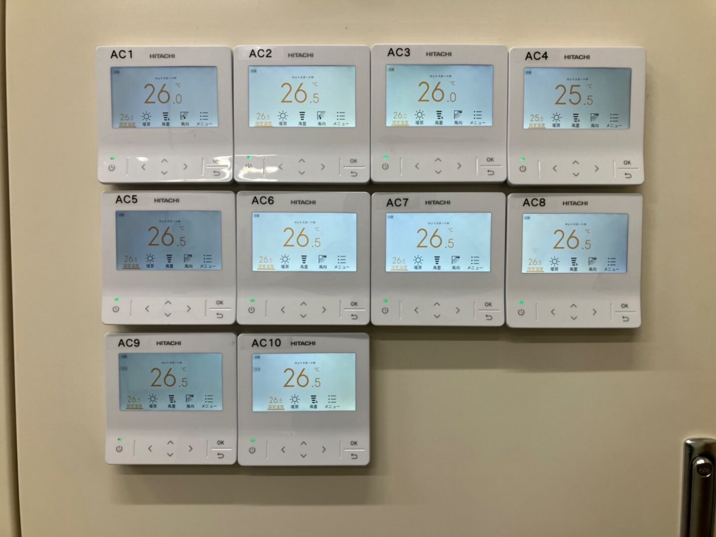 操作はHITACHI製集中リモコン(個別温度設定対応)を採用。