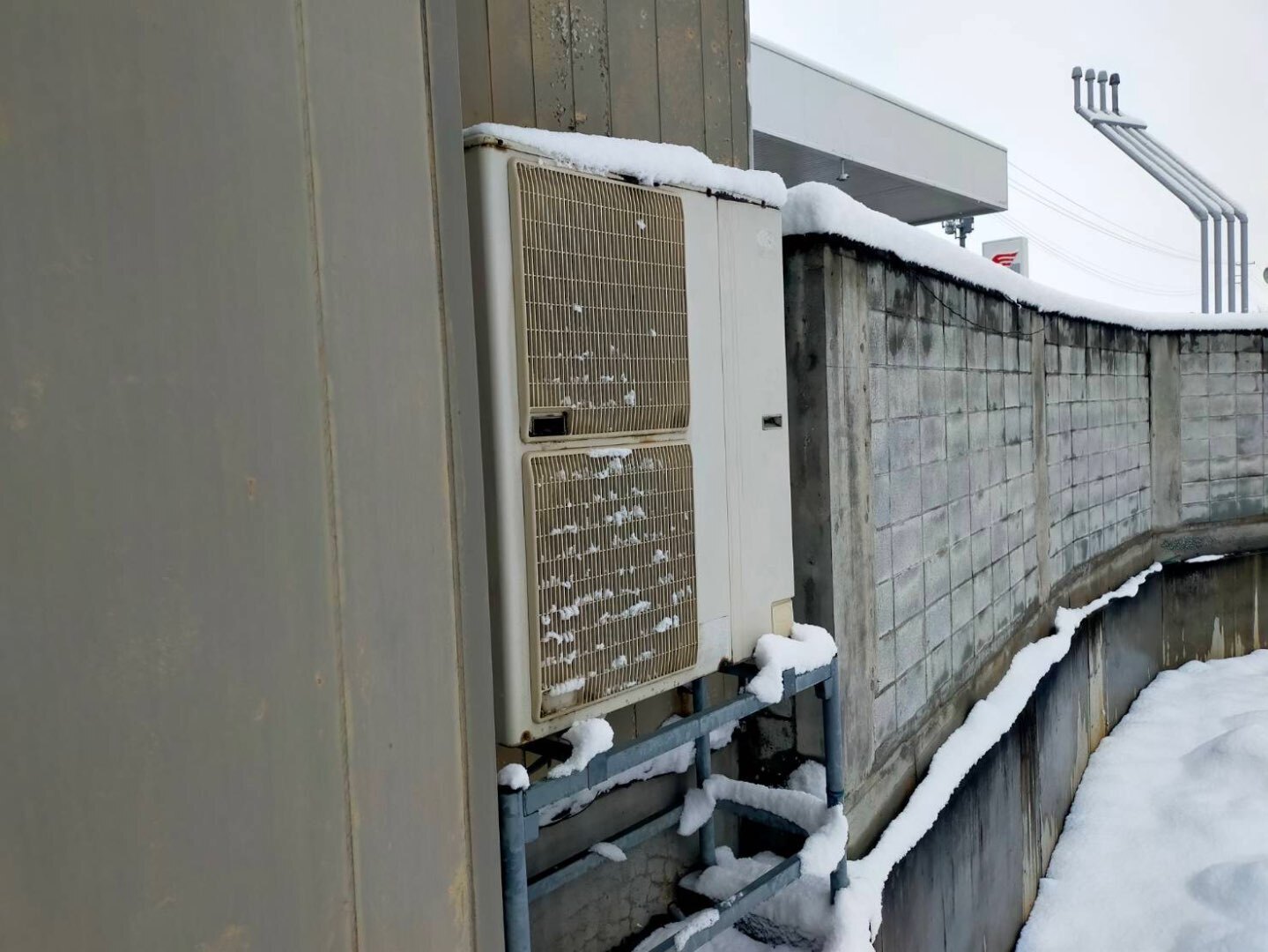 冬場は室外機周辺が積雪・凍結する環境で、暖房能力が発揮しにくい状況でした。