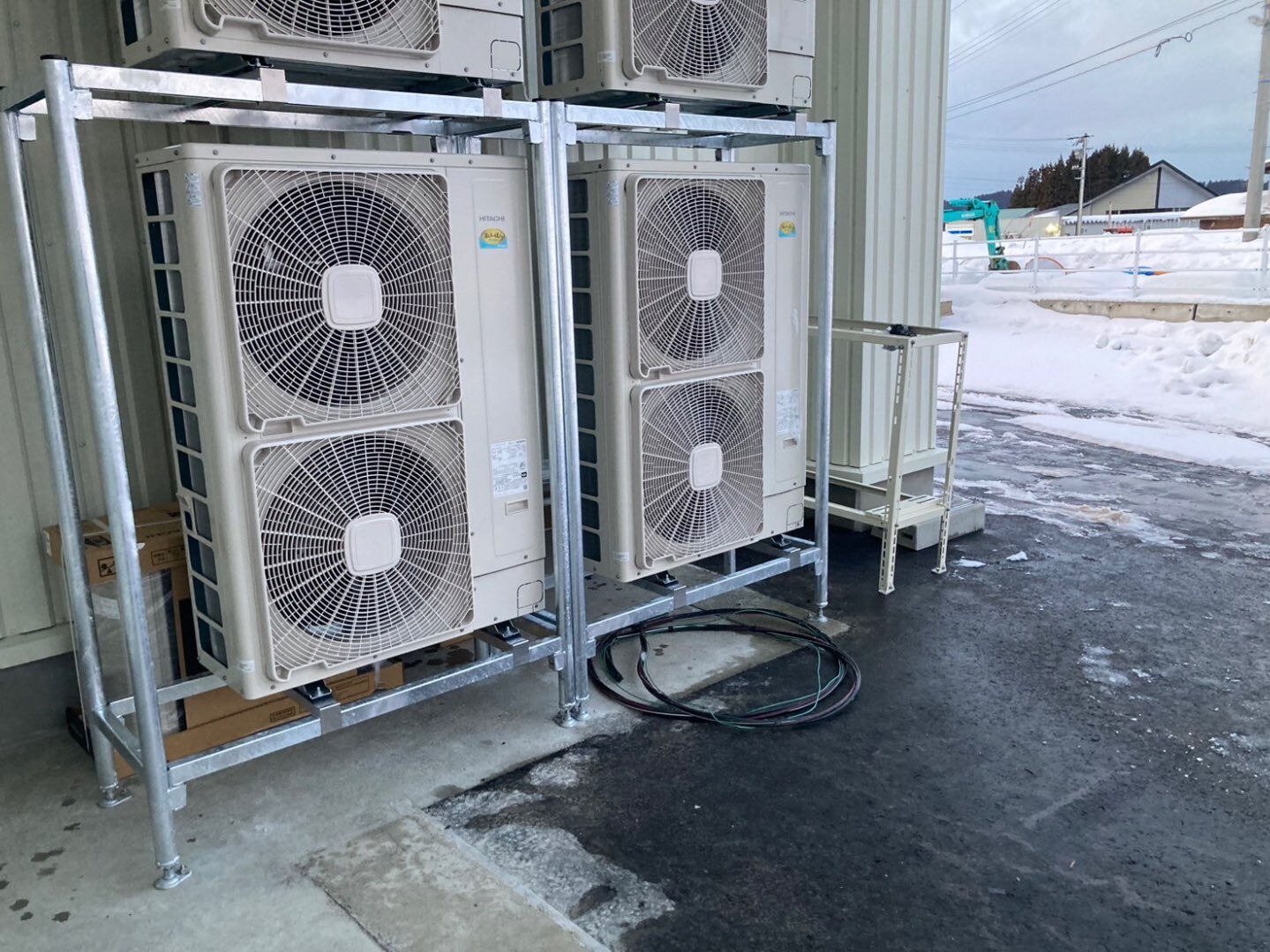 本施工事例は、秋田県北秋田市という豪雪地域において進められた店舗新築工事に伴う、日立製 業務用エアコンの新規設置工事です。