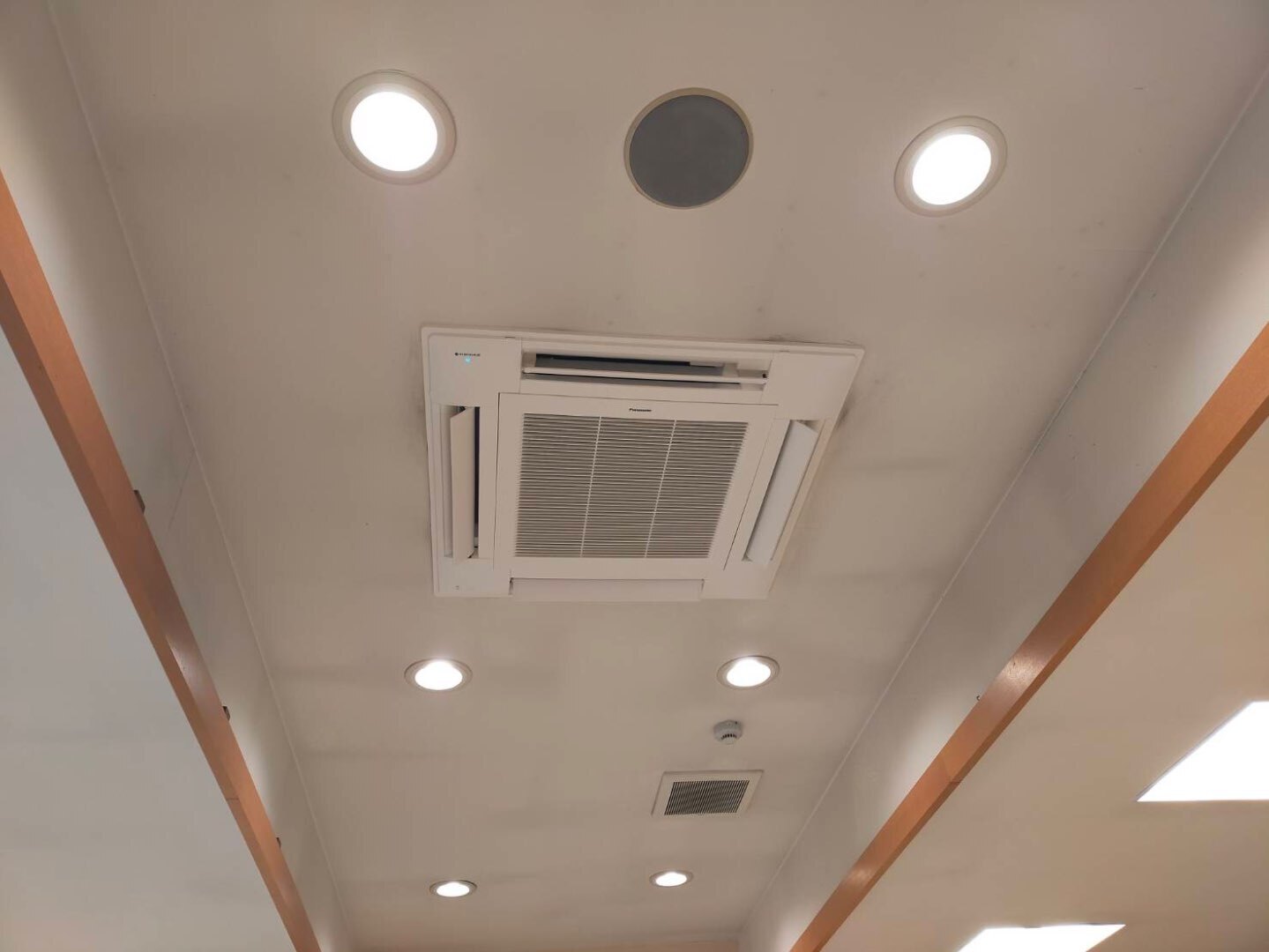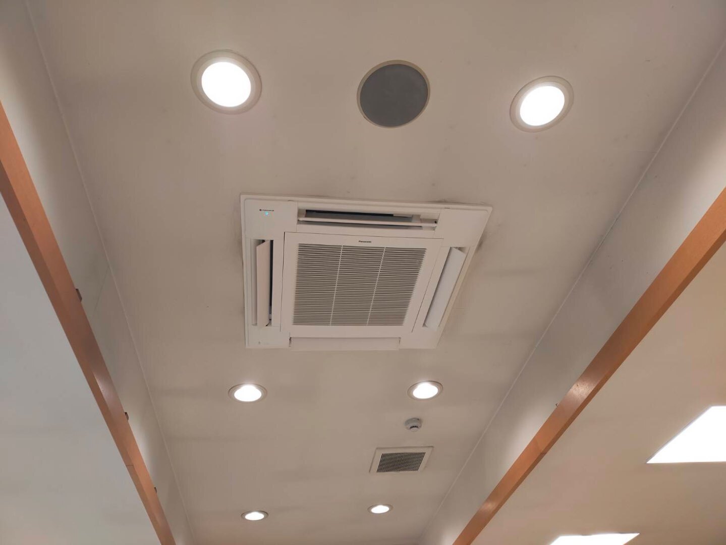今回導入した**Panasonic業務用エアコン(天井カセット4方向タイプ)**は、