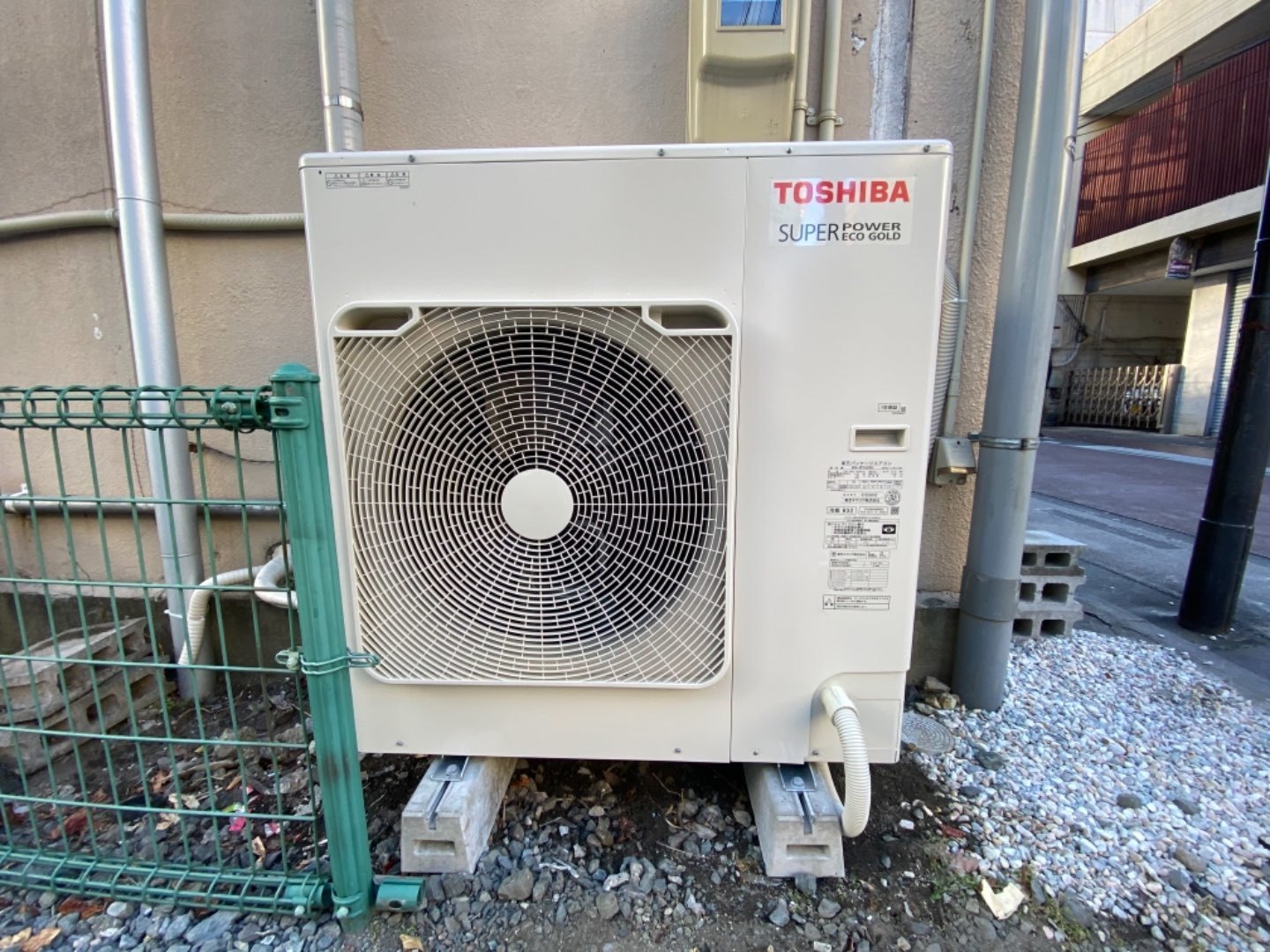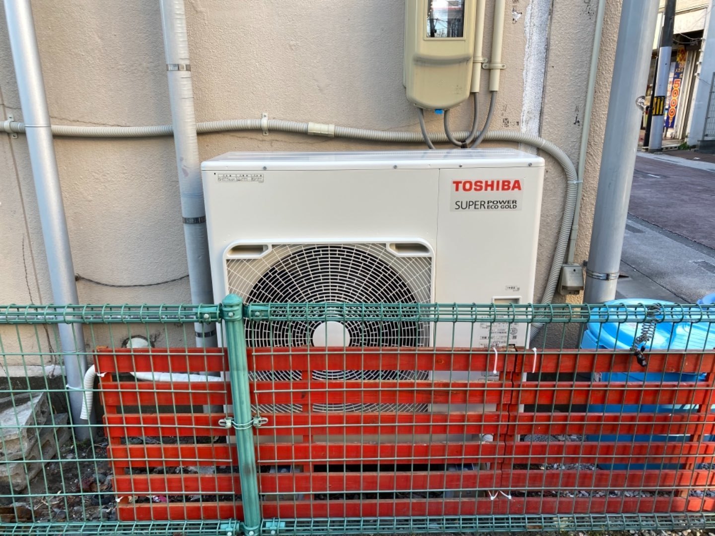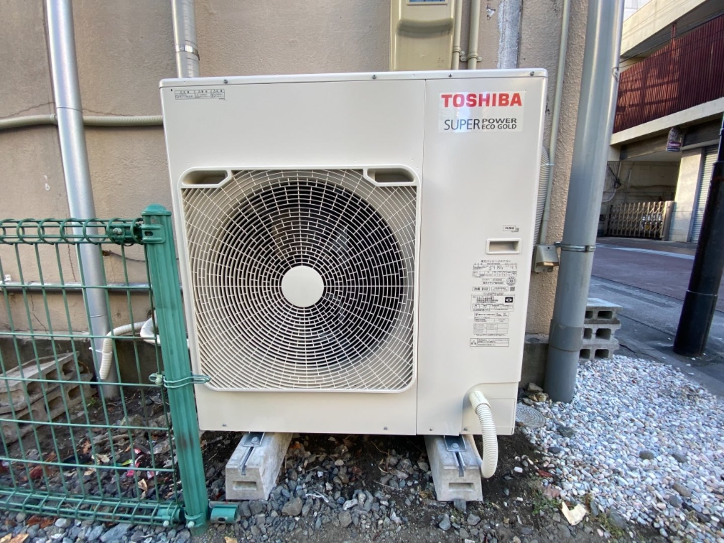 福島県いわき市平 飲食店店舗様 東芝キャリアパッケージエアコン 同時ツイン新規取付工事