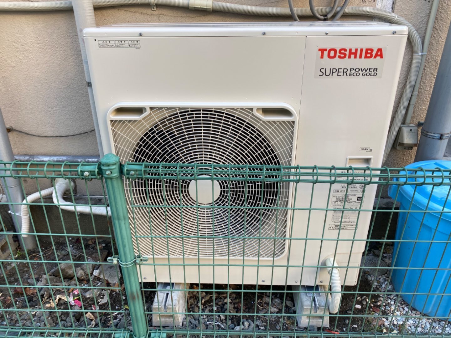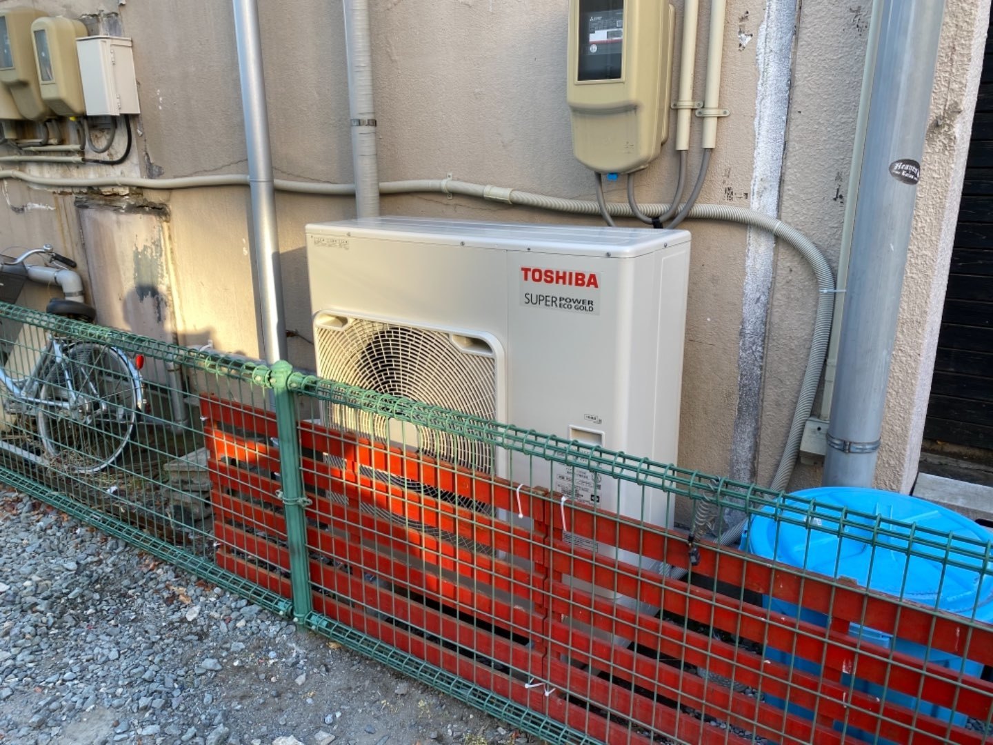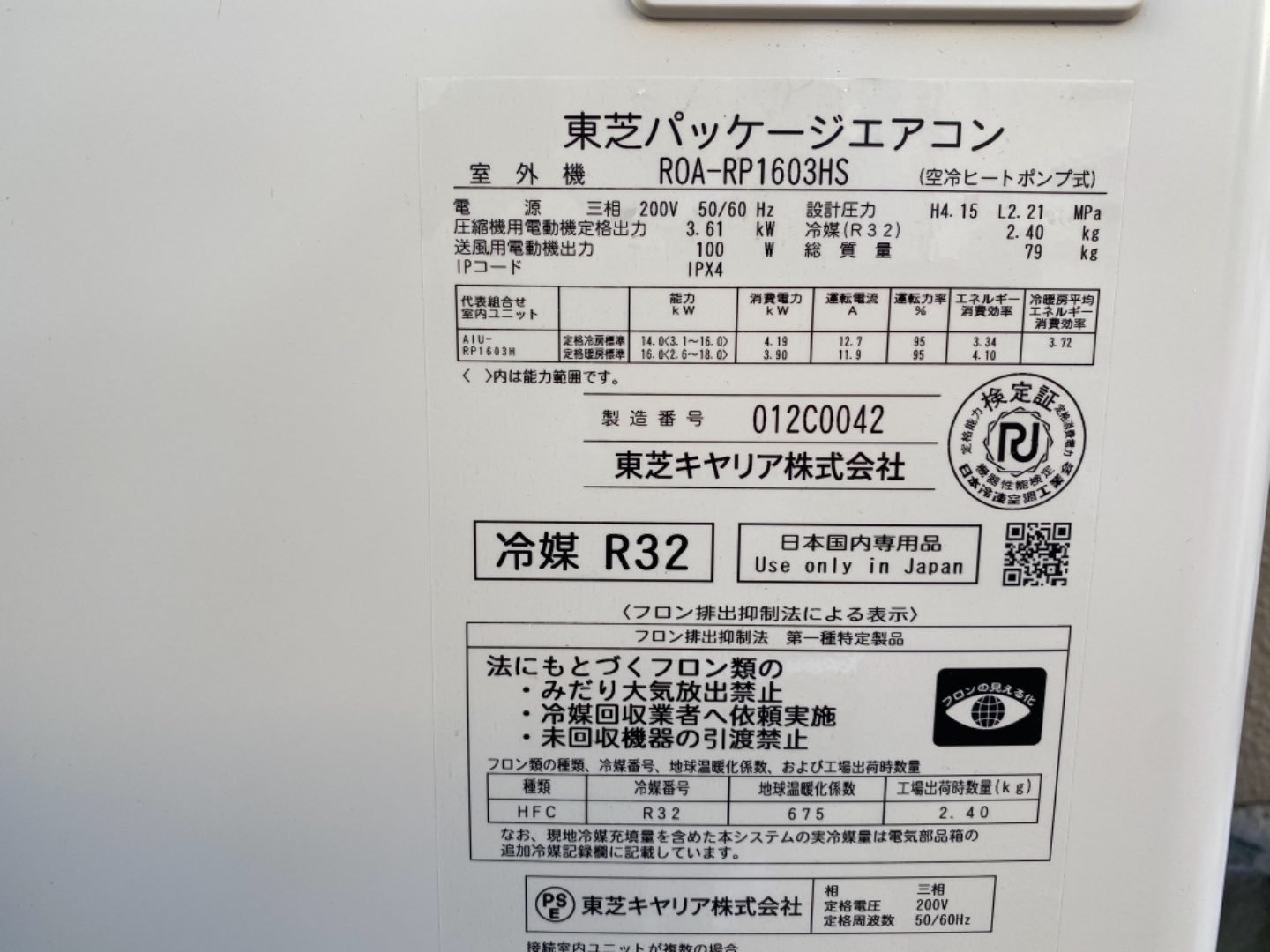福島県いわき市平 飲食店店舗様 東芝キャリアパッケージエアコン 同時ツイン新規取付工事